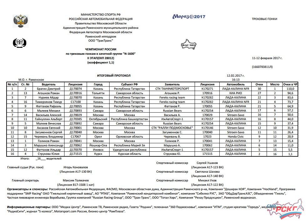 Тимур Тимерзянов и Рафаэль Фаттахов набрали по 21 очку, оставшись за пределами призовой тройки. Действующие пилоты СМП РСКГ Владимир Черевань и Александр Марушко настолько увлеклись борьбой, что довели дело до "ушей". Оба остались невредимыми, однако в итоговом протоколе Черевань с 9 очками лишь двенадцатый, а Марушко, набравший 6 баллов, четырнадцатый. Между ними расположился еще один участник Российской серии колцевых гонок Роман Голиков: он заработал 7 очков.