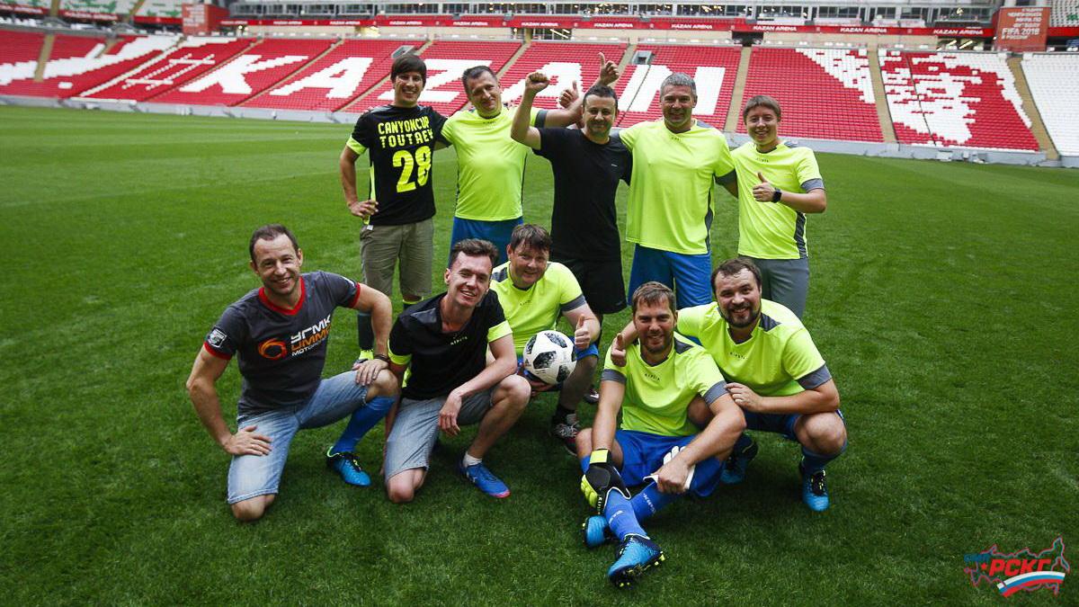 Вслед за звездами футбола пилоты и организаторы СМП РСКГ вышли на поле Казань Арены.