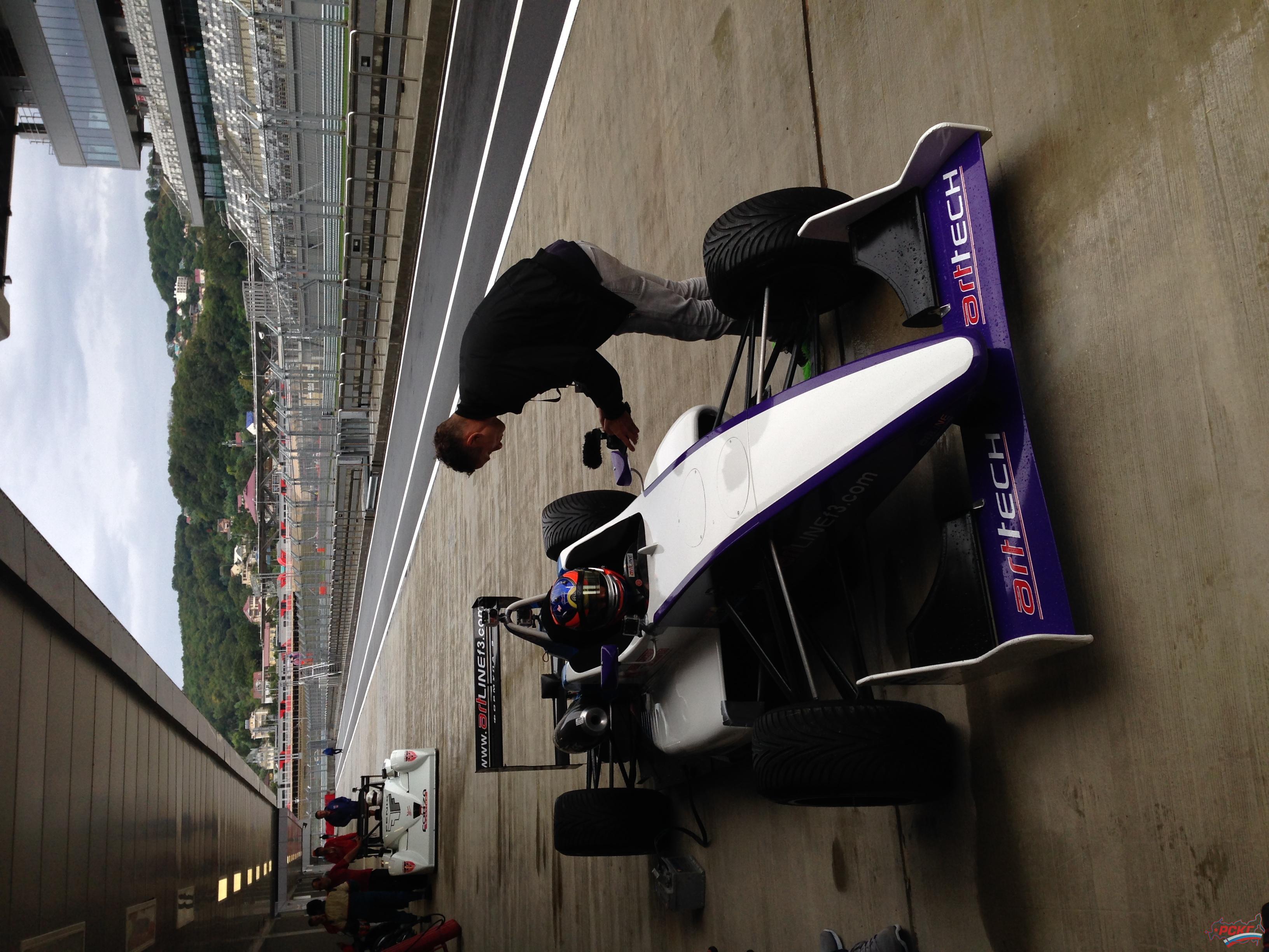 М.К.: Через 3 недели нам тут ездить, вот я и решил потренироваться. Взяли в аренду российскую Формулу-3, оплатили тренировки в рамках свободных заездов российского первенства – и вот второй день катаемся.